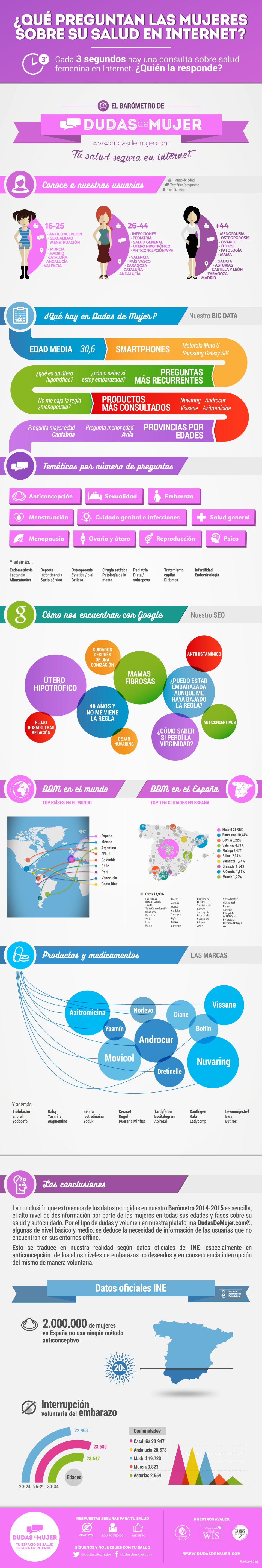 Desde la plataforma de Salud de la Mujer DudasDeMujer.com® enfocada en crear un espacio seguro para la mujer en internet han recogido durante un ejercicio todo el DATA de las consultas, edades provincias y patologías para extraer un Barómetro muy acertado y real de uno datos que carece el mercado actualmente, la usuaria/paciente mujer a nivel digital y excluyendo los entornos de marcas comerciales de los que la mujer suele huir.