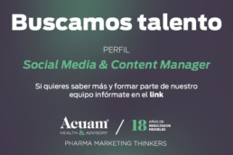 Acuam es una compañía de puntera en el sector farmamarketing. Estamos buscando un Social Media & Content Manager que aporte su expertise y toda su buena onda.