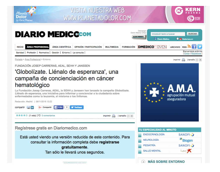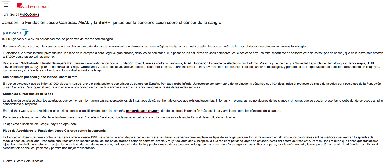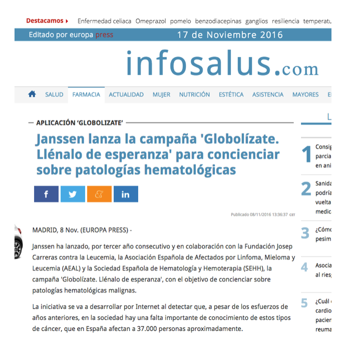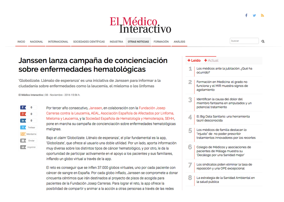 Nuestra experiencia ha sido muy positiva y la acogida en los medios de comunicación ha sido un éxito sin precedentes. Medios del sector salud como ConSalud, Diario Médico, Infosalus, El Médico Interactivo, entre otros muchos, se han hecho eco de la acción.