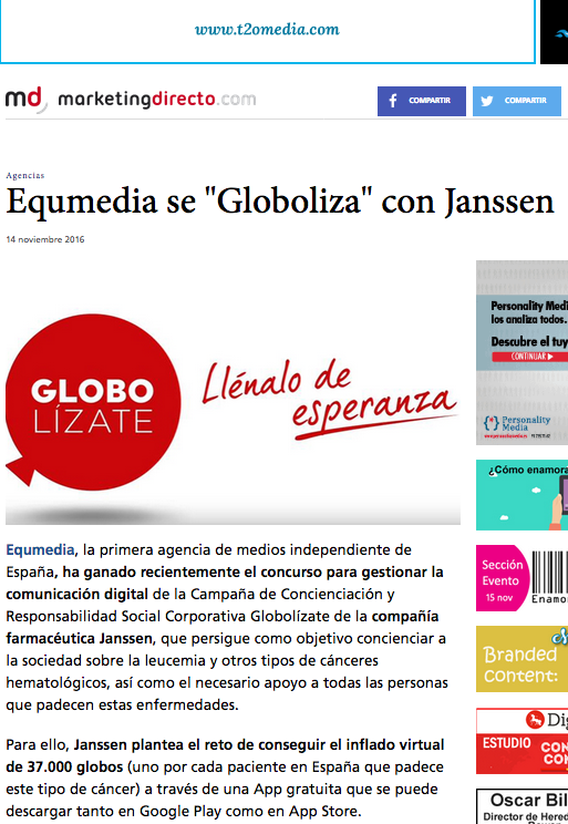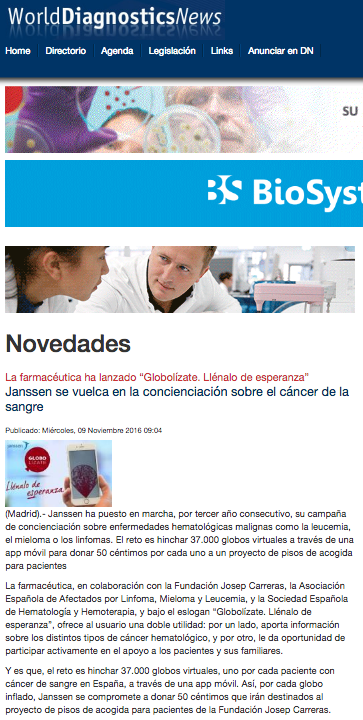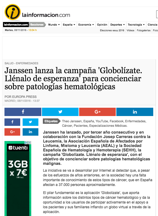 Desde ACUAM Healthcare hemos desarrollado la plataforma web y aplicación con tecnología `bot´ GLOBOLÍZATE para JANSSEN con el propósito de concienciar y sensibilizar a la población de los cánceres de la sangre.